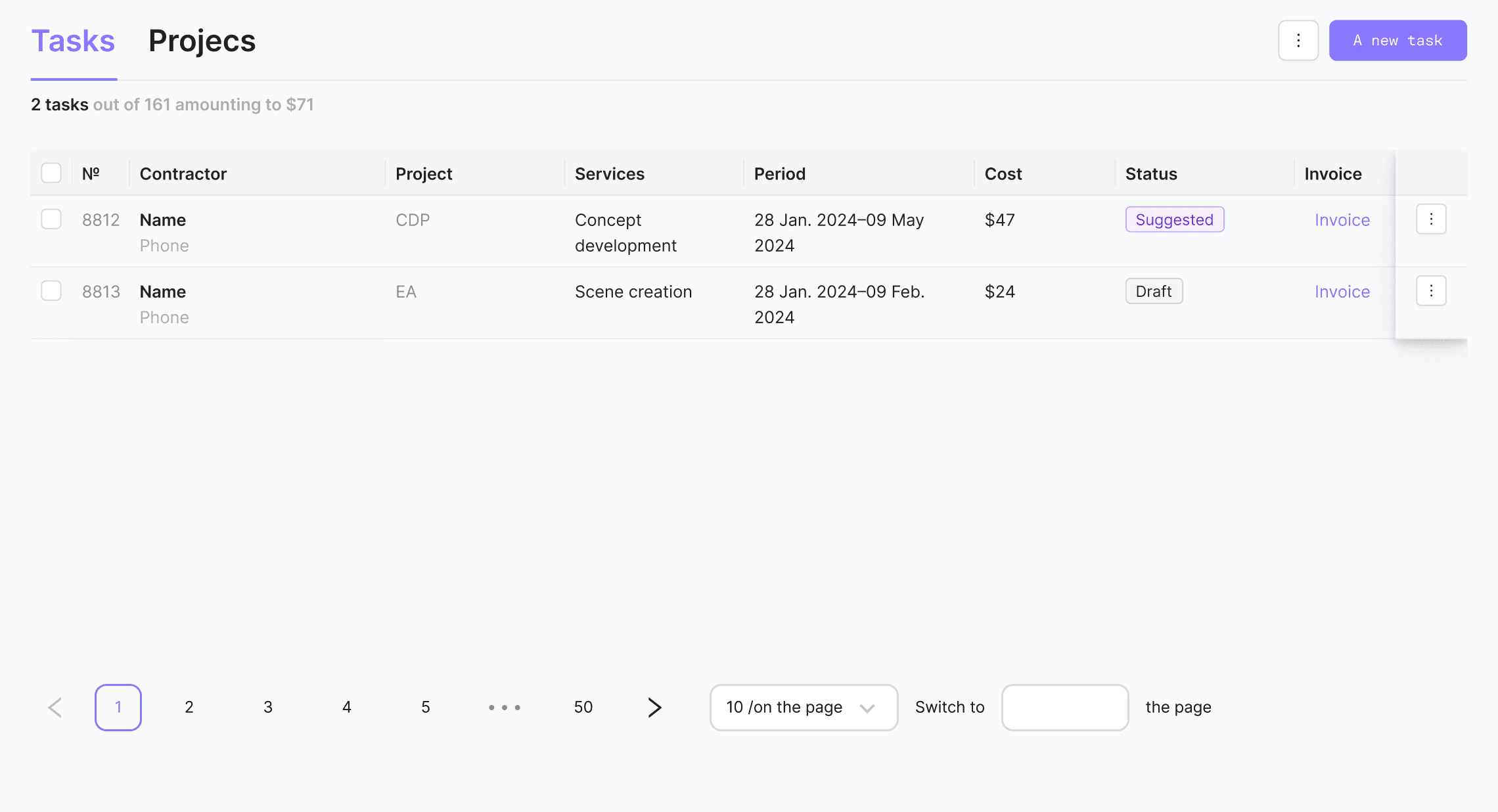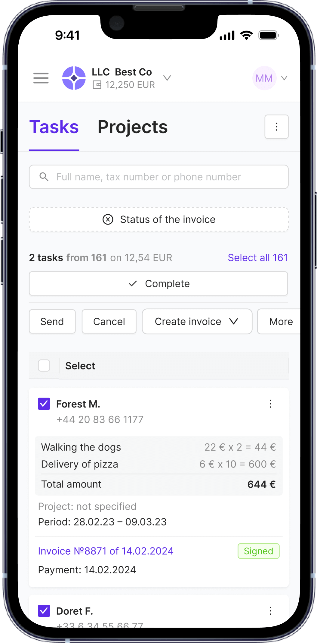 Create, track and manage tasks and invoices.